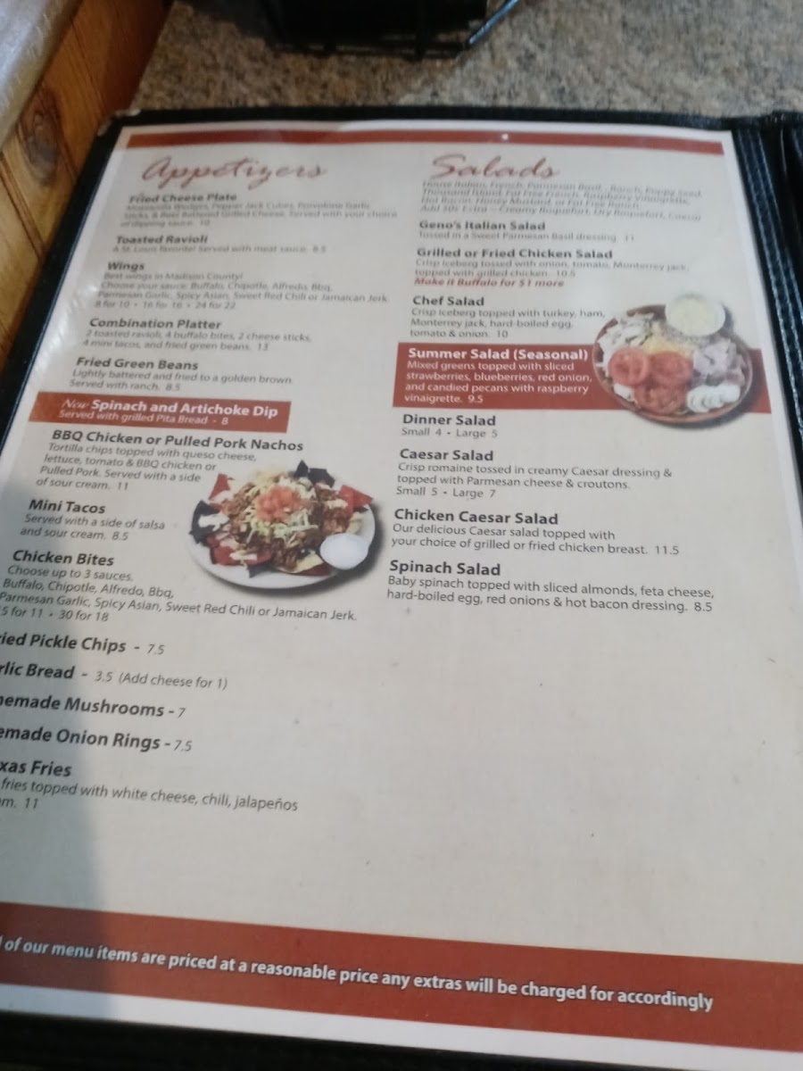 The menu at Geno's 140 offers a comforting blend of hearty meals and casual bites, perfect for those looking to enjoy a relaxed dining experience. Whether you're gathering for a family dinner or stopping in for a satisfying lunch, the offerings provide a familiar and welcoming feel that complements the warm, down-to-earth atmosphere of this Bethalto favorite.